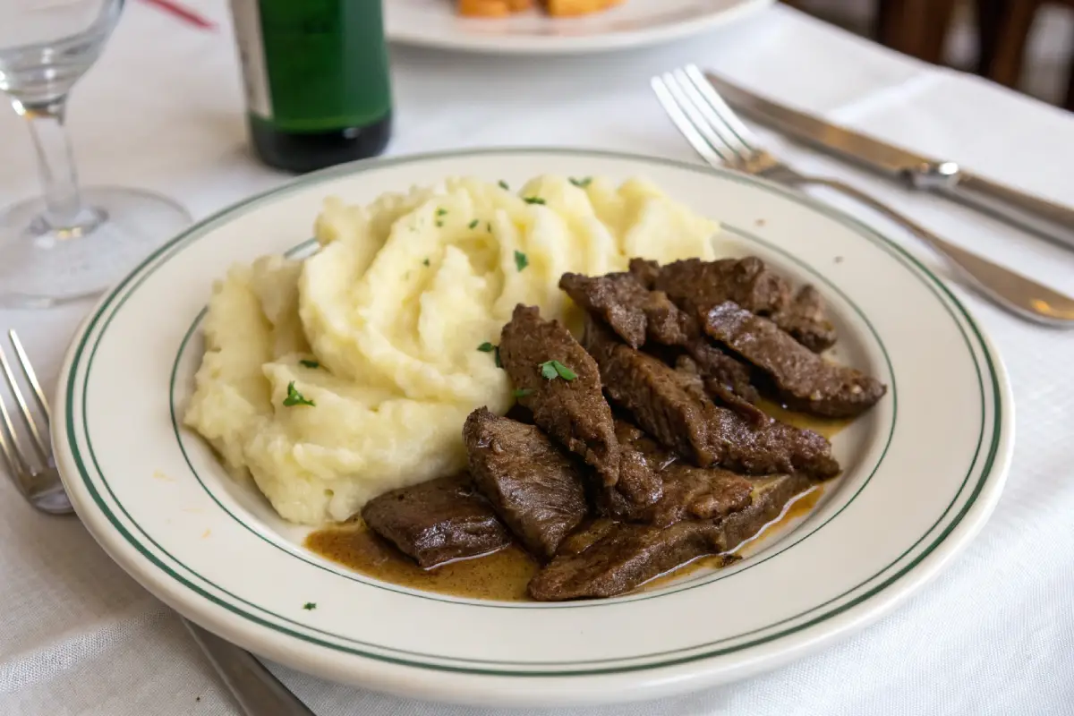 - Por fim, sirva as iscas de fígado acompanhadas do purê de batata cremoso, prontas para serem saboreadas.